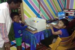 Sensory Integration: With facilities for children enabled illuminations, music, audio-visual displays the sensory integration room could be converted into stimulation rich dark room. It facilitated trunk movements and eye-hand co-ordination. Through animation films in groups, observation and learning skills are promoted.